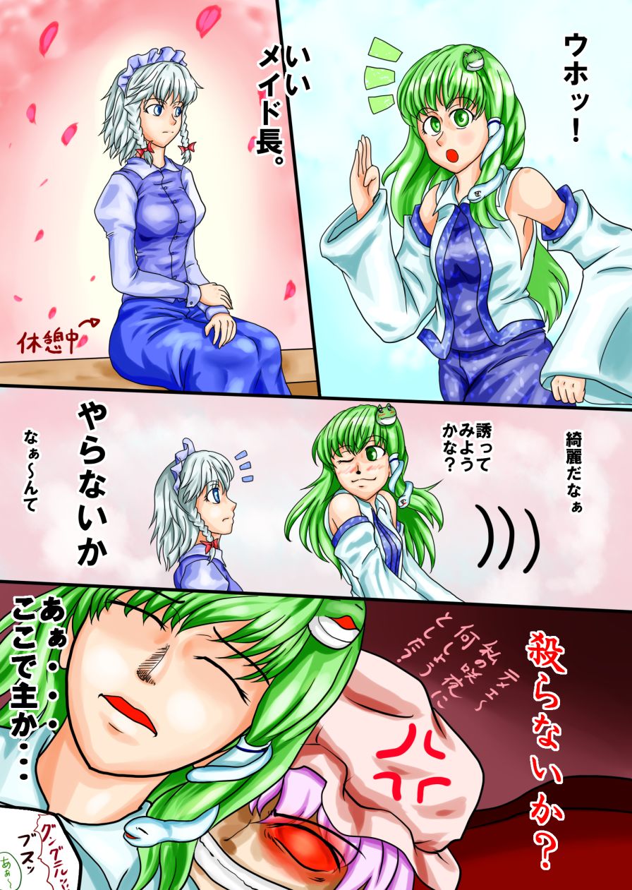 早苗さんに”やらないか”なんて言うたら神様に毎年大凶の天罰が下ってしまいますえ。