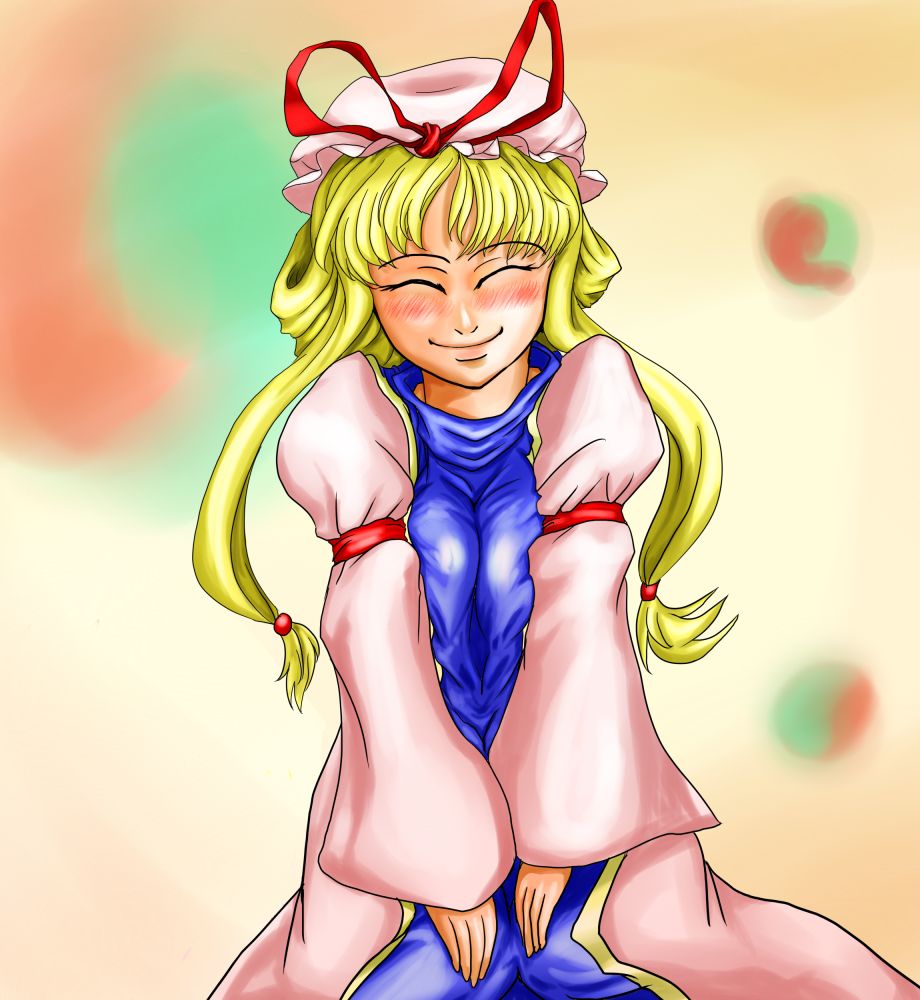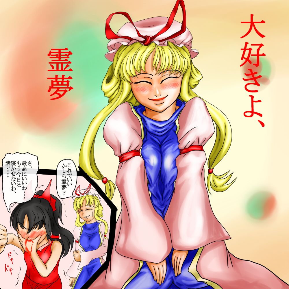 紫って年上な感じがするけど可愛く見せようと描くとどうしても霊夢と同年代ぐらいに描いてしまう難しさがありますな。
