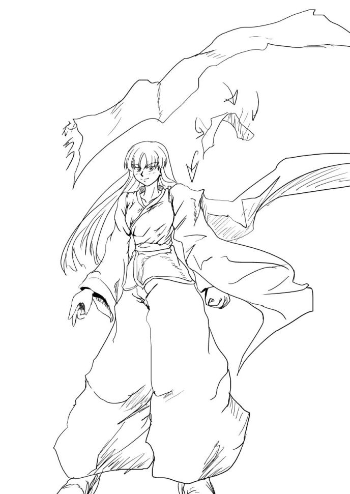 日曜に即急に描いた新刊用練習ラフを線入れして見る。